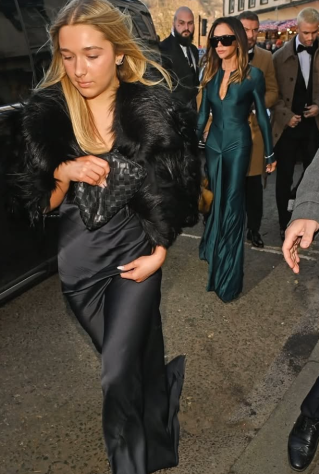 האבזור היה מלוטש לא פחות. ז’קט פרוותי שהגן עליה מפני הקור, סנדלי רצועות מינימליסטיים וקלאץ’ שחור במראה קלוע של בוטגה ונטה. אגב, זו לא הפעם הראשונה שהארפר לובשת את השמלה. היא כבר כיכבה בה ביום הולדתו של דיוויד בקיץ האחרון. שמלות סאטן ארוכות מסתמנות כבחירת ה"גו טו" הטבעית של בת האצולה הבריטית, ומהתמונות האחרונות בהחלט אפשר להבין למה.