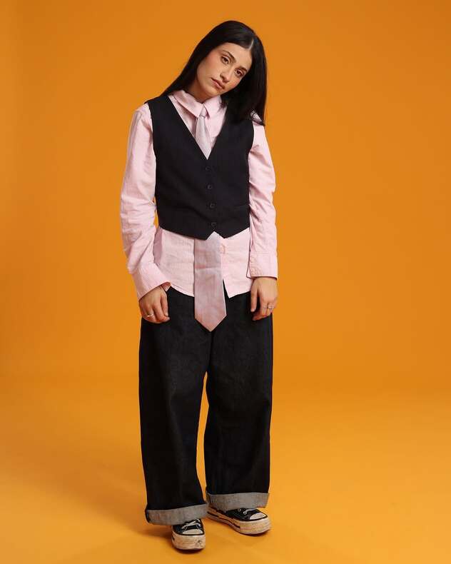 "יש מיליון כאלה. חליפת קורדרוי מזוויעה וצמודה, זה היה בשנת 2021, לא יודעת למה עשיתי את זה. לבשתי אותה לבמה פתוחה שבה פעם ראשונה קיבלתי אפשרות לשיר שני שירים ולא אחד. פתחתי את הבמה הפתוחה, קניתי את החליפה הזאת במיוחד. זה היה נראה זוועה, אבל ככה החתימו אותי בחברת תקליטים, מישהו ראה אותי על הבמה. זה היה לילה של נס".